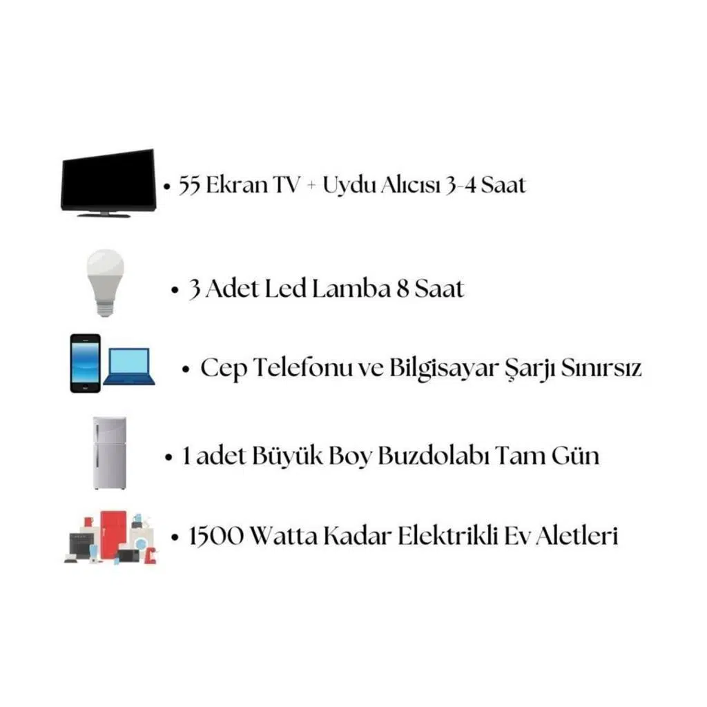 Bu paket, günde yaklaşık 5000W enerji üreterek temel elektrikli cihazlarınızı rahatlıkla çalıştırır.