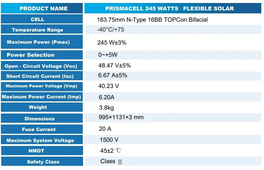 | Etiketler | 250 Watt Esnek Panel TOPCon Hücreli Yüksek Performans |