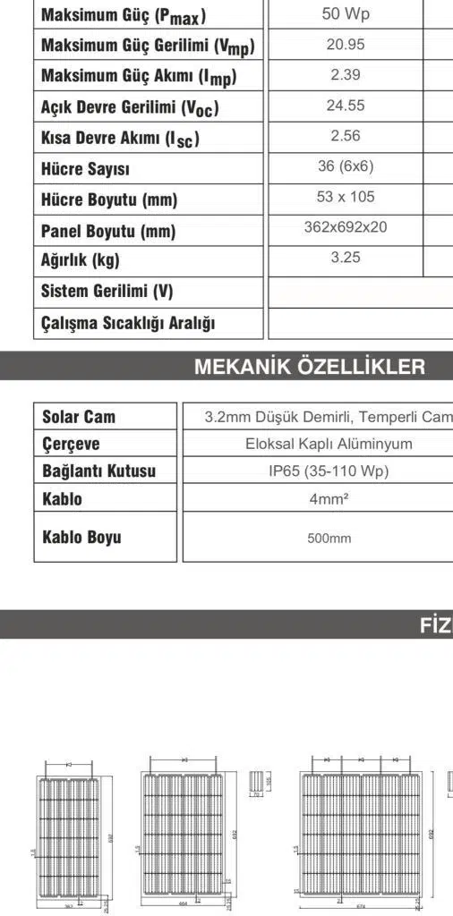 | Etiketler | 50 Watt Monokristal Güneş Paneli-Solar Panel |