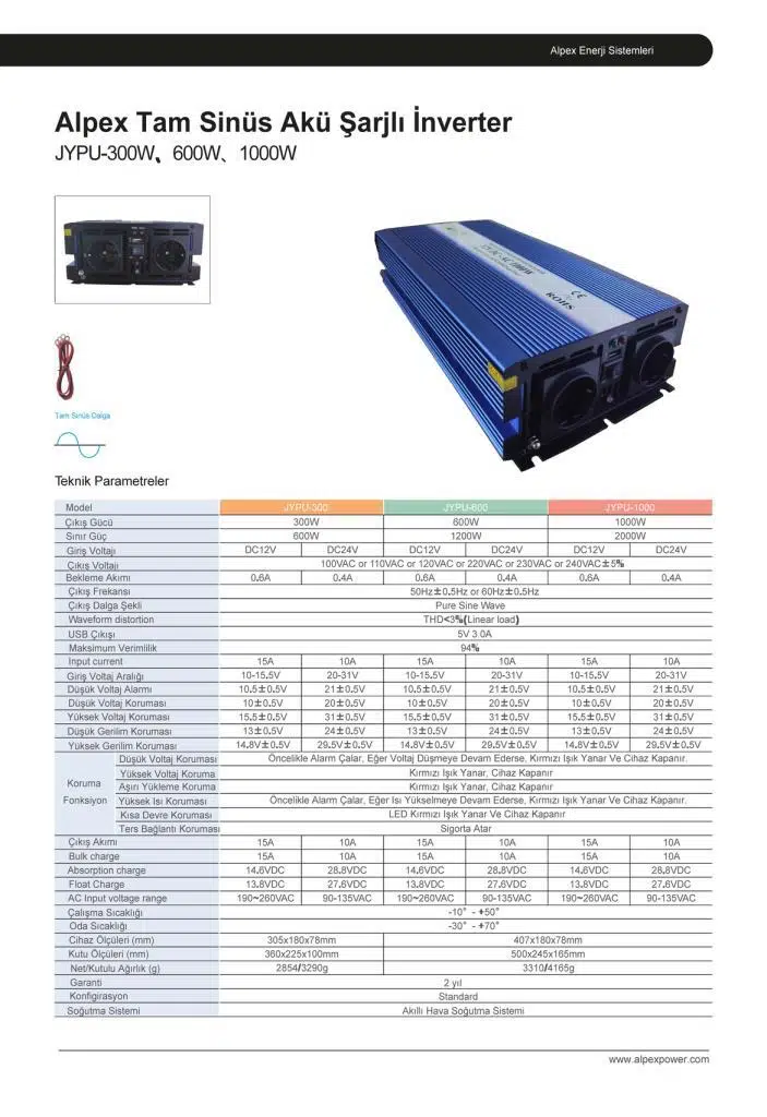 | Etiketler | Alpex 1000 Watt 12 Volt Ups (Şebeke Şarjlı) Tam Sinüs İnvertör |