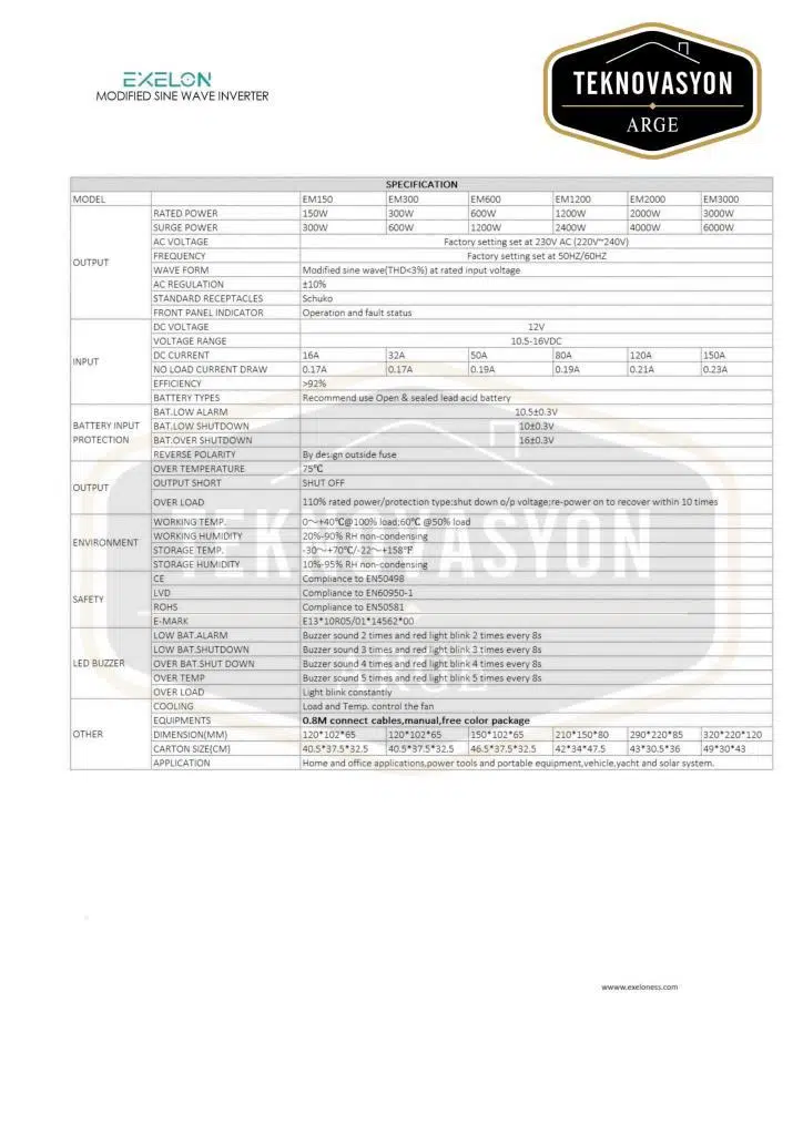 Tekovasyon Arge Exelon 12 V 600 W Modifiye Sinüs inverter