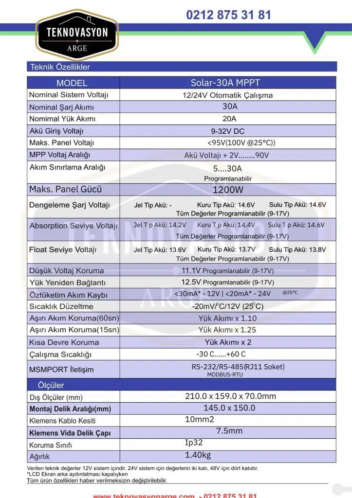 | Etiketler | Havensis 30A MPPT Solar Şarj Kontrol |