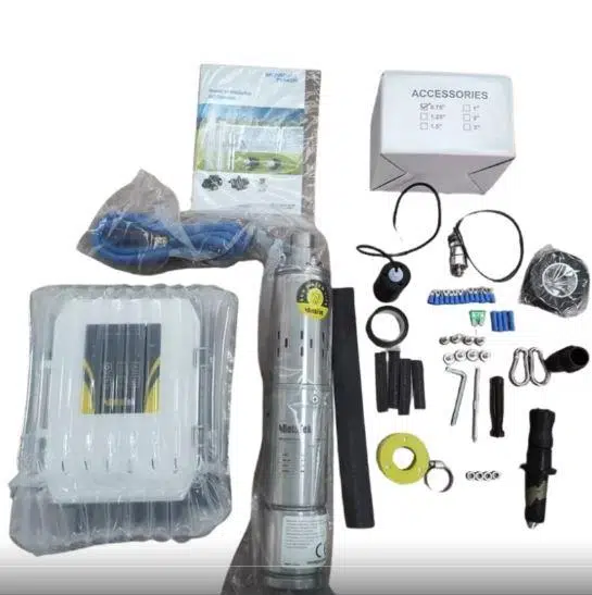 48 volt solar Dc pompa sürücülü güneş enerjili su pompası 70 metrede 1 ton su, 42 metre 2,5 ton su vermektedir. 0-10 metrede 4,5 ton su vermektedir.