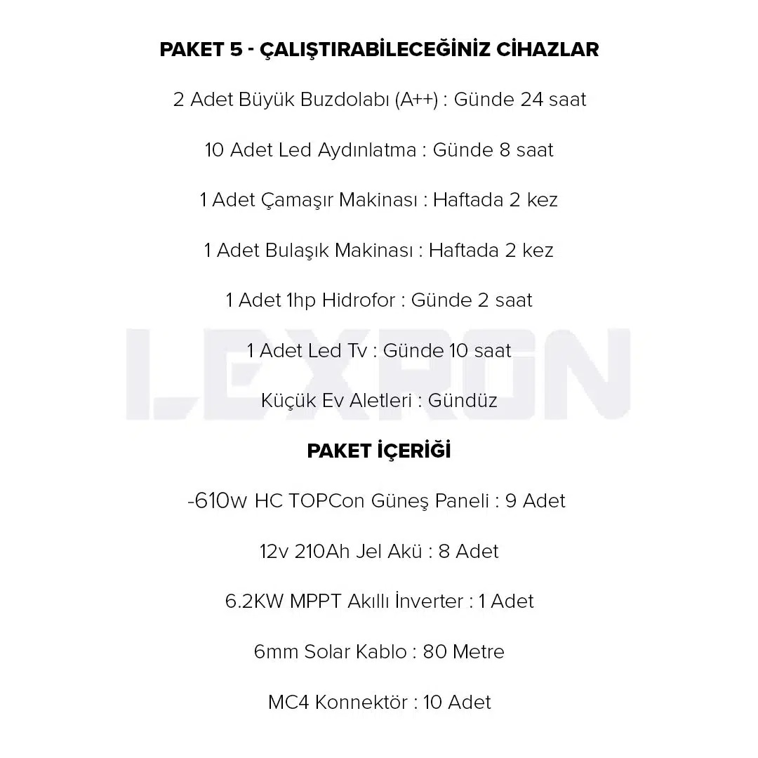 | Etiketler | LEXRON 6.2kW BAĞ EVİ PAKET SİSTEM 2 |