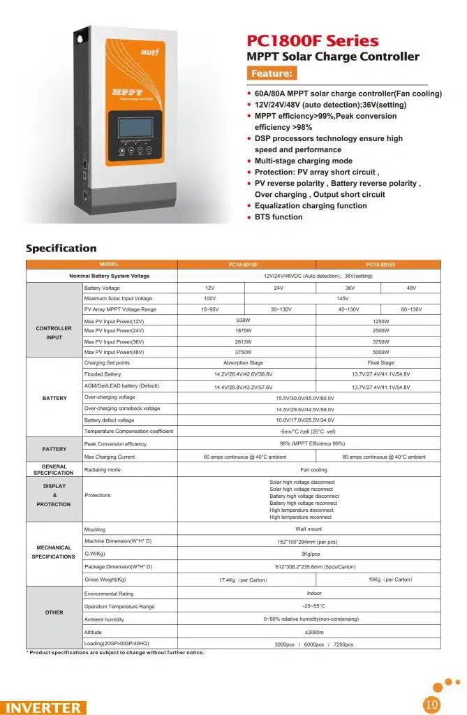 Maksimum Güç Noktası Takibi (MPPT): Güneş panelinden gelen enerjinin optimum verimlilikle kullanılmasını sağlayarak bataryalarınızı daha hızlı şarj eder.