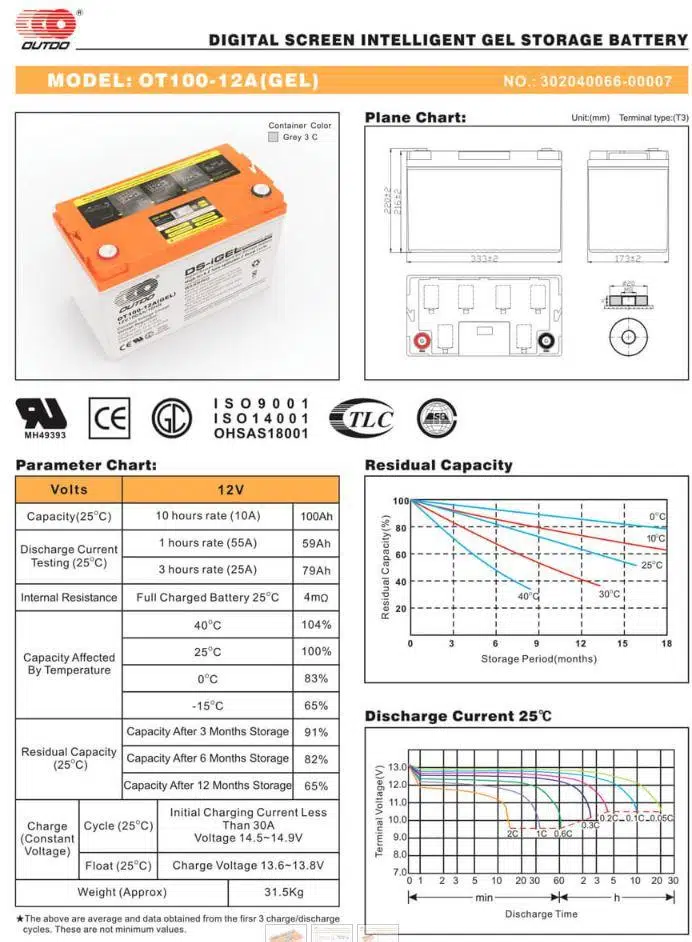 Outdo 150Ah 12V Jel Akü Derin Döngü Ve Dijital Ekran