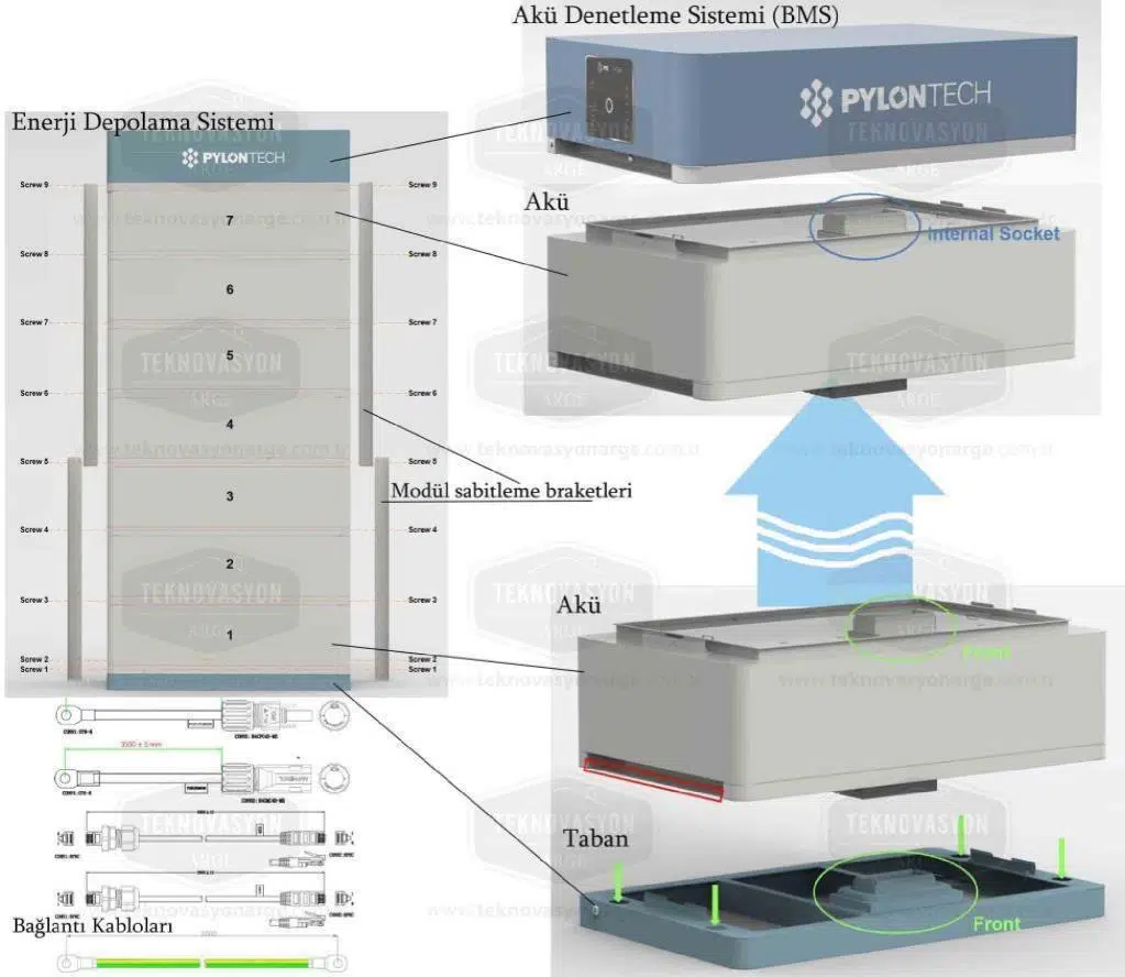| Etiketler | Pylontech FC0500-40 Akü Denetleme BMS, Taban, Kablolar, Force H1 için |