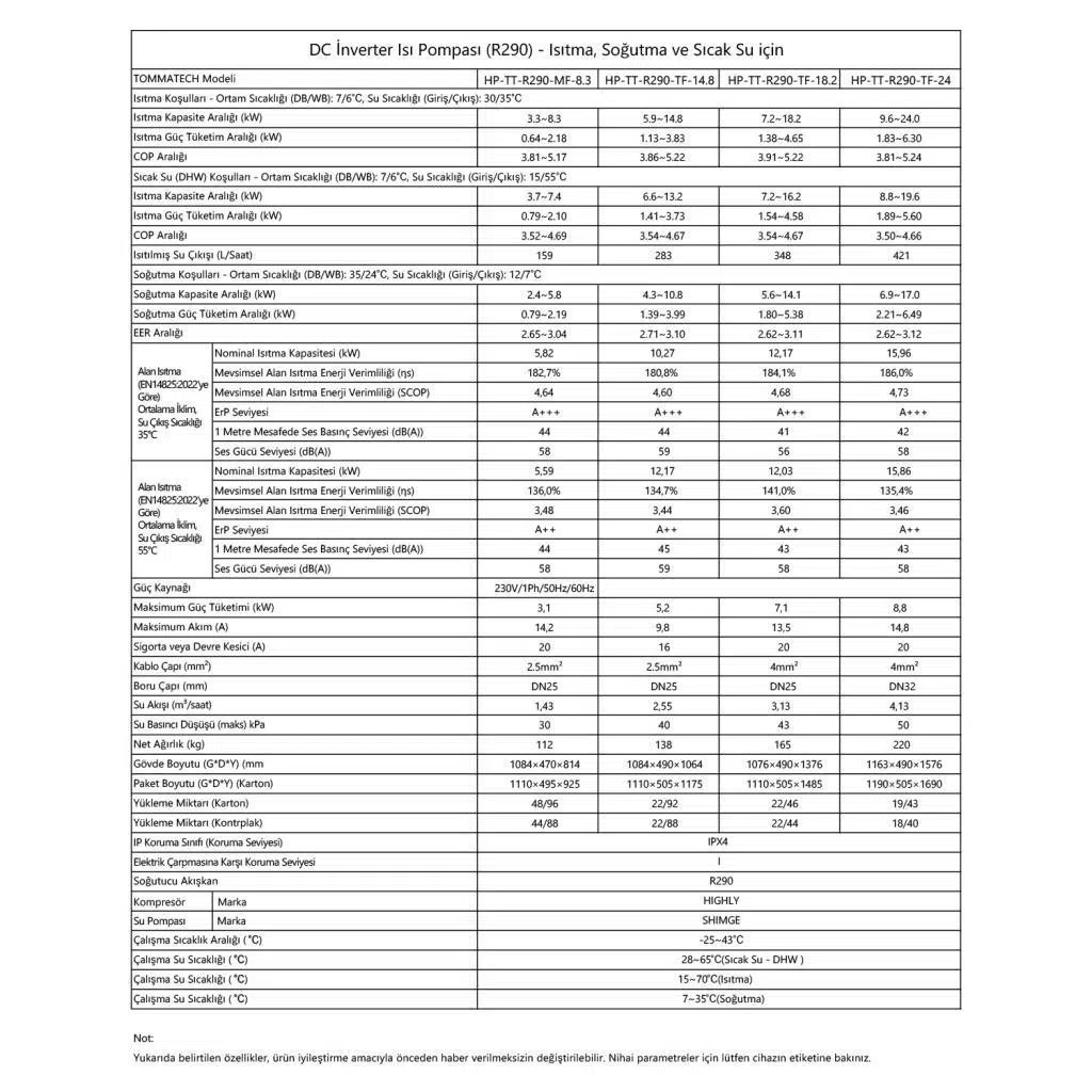 | Etiketler | TommaTech 24kW R290 Power Serisi Isı Pompası (TriFaze) |