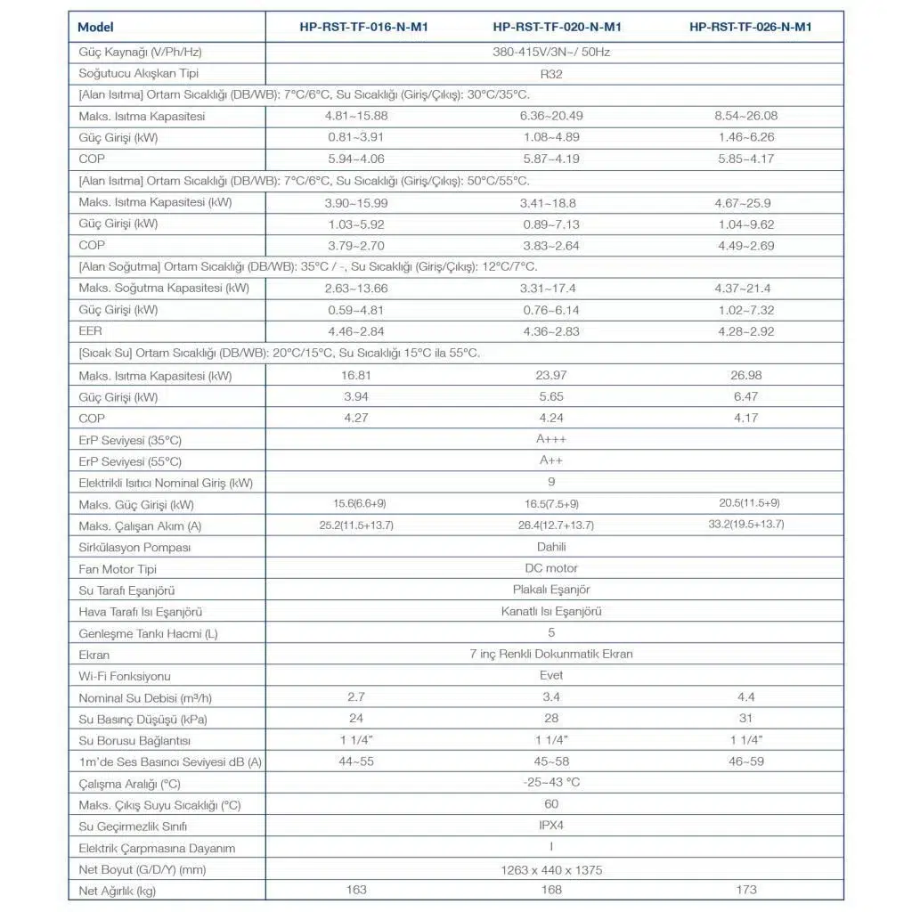 • Teknoloji: Full DC inverter, EVI destekli sistem