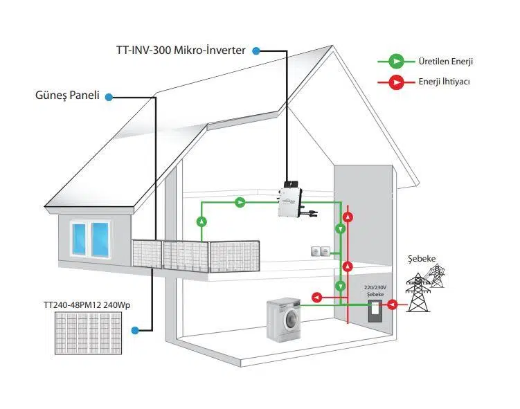 TommaTech 300We 2x240Wp Mikro İnverter Güneş Enerjisi Paketi