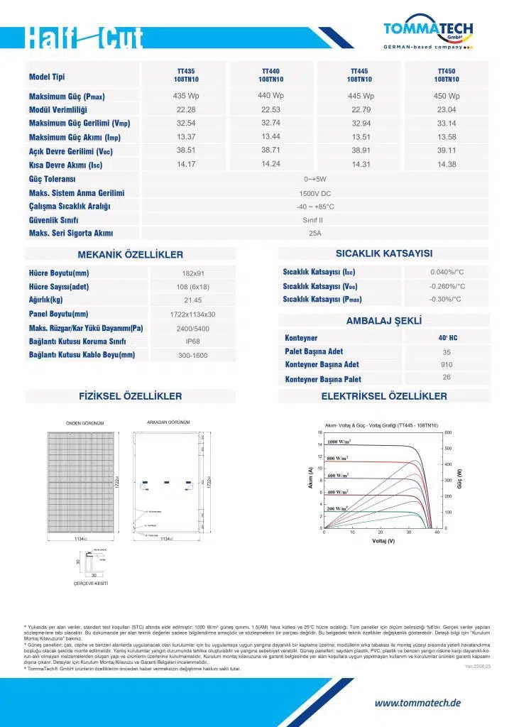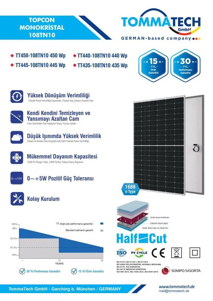 | Etiketler | TommaTech 425Wp 108TNB M10 TOPCon Güneş Paneli |