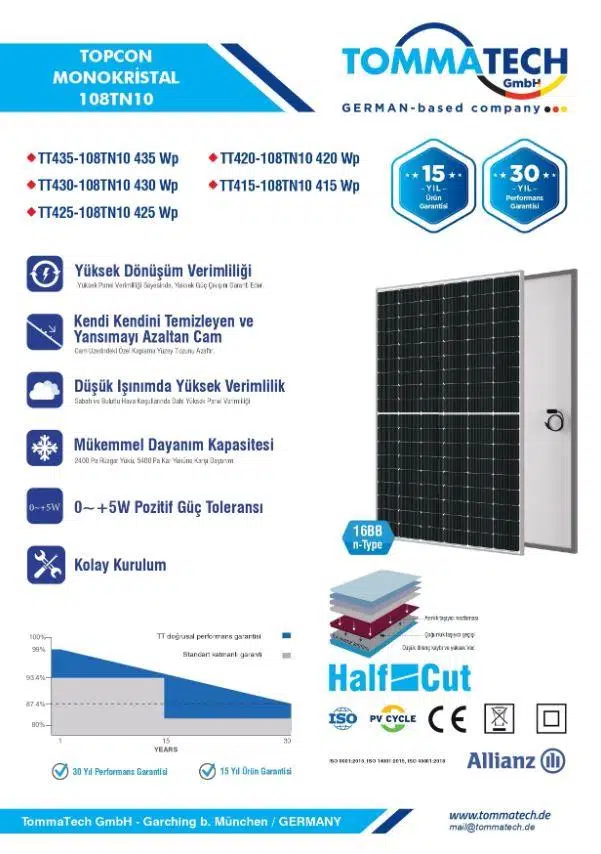 | Etiketler | TommaTech 430 W Multibusbar Monokristal Topcon Güneş Paneli |