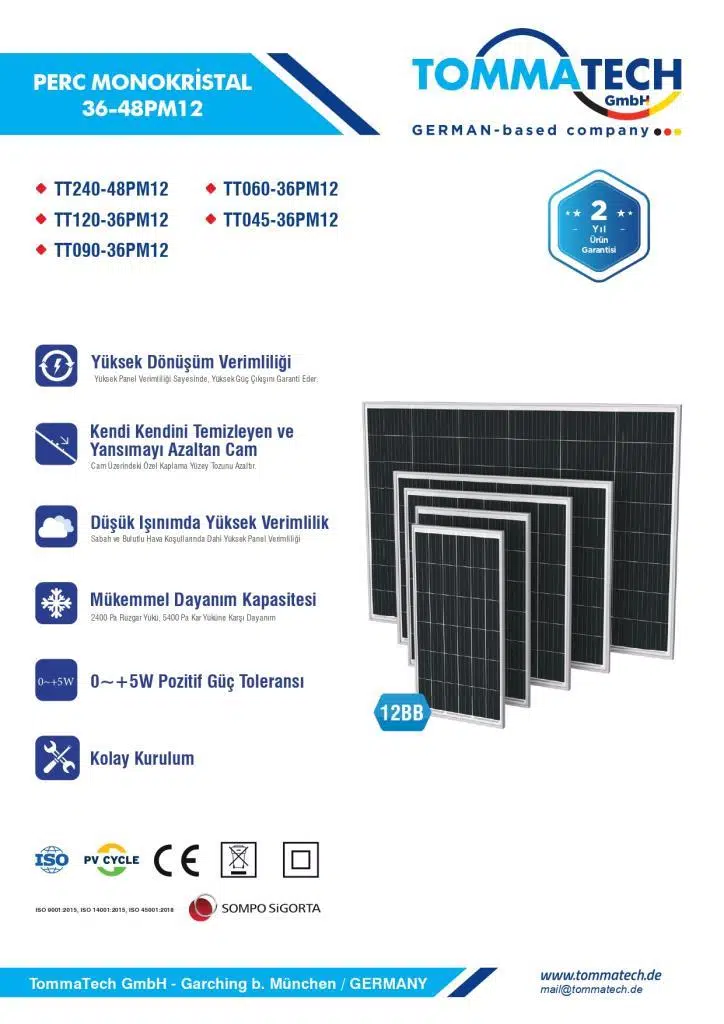 | Etiketler | TommaTech 90Wp M12 36PM HC-MB Güneş Paneli |