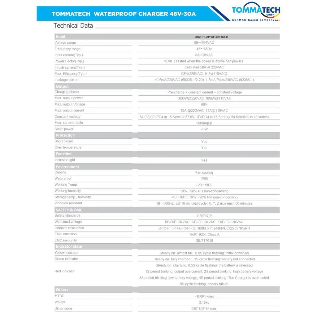 TommaTech Batarya Şarj Ünitesi Entegre 48V-30A