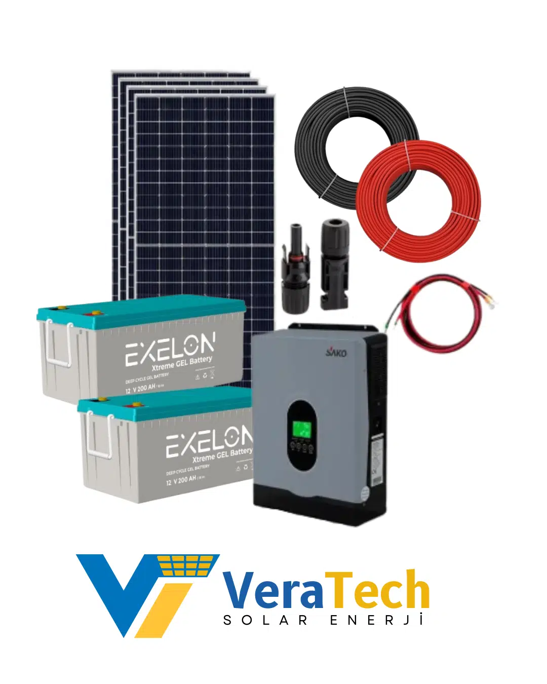 VeraTech Bahçe Evi Çamaşır Makinesi Solar Paketi 2200W Güneş Paneli 2.7Kw İnverter 400ah Jel Akü