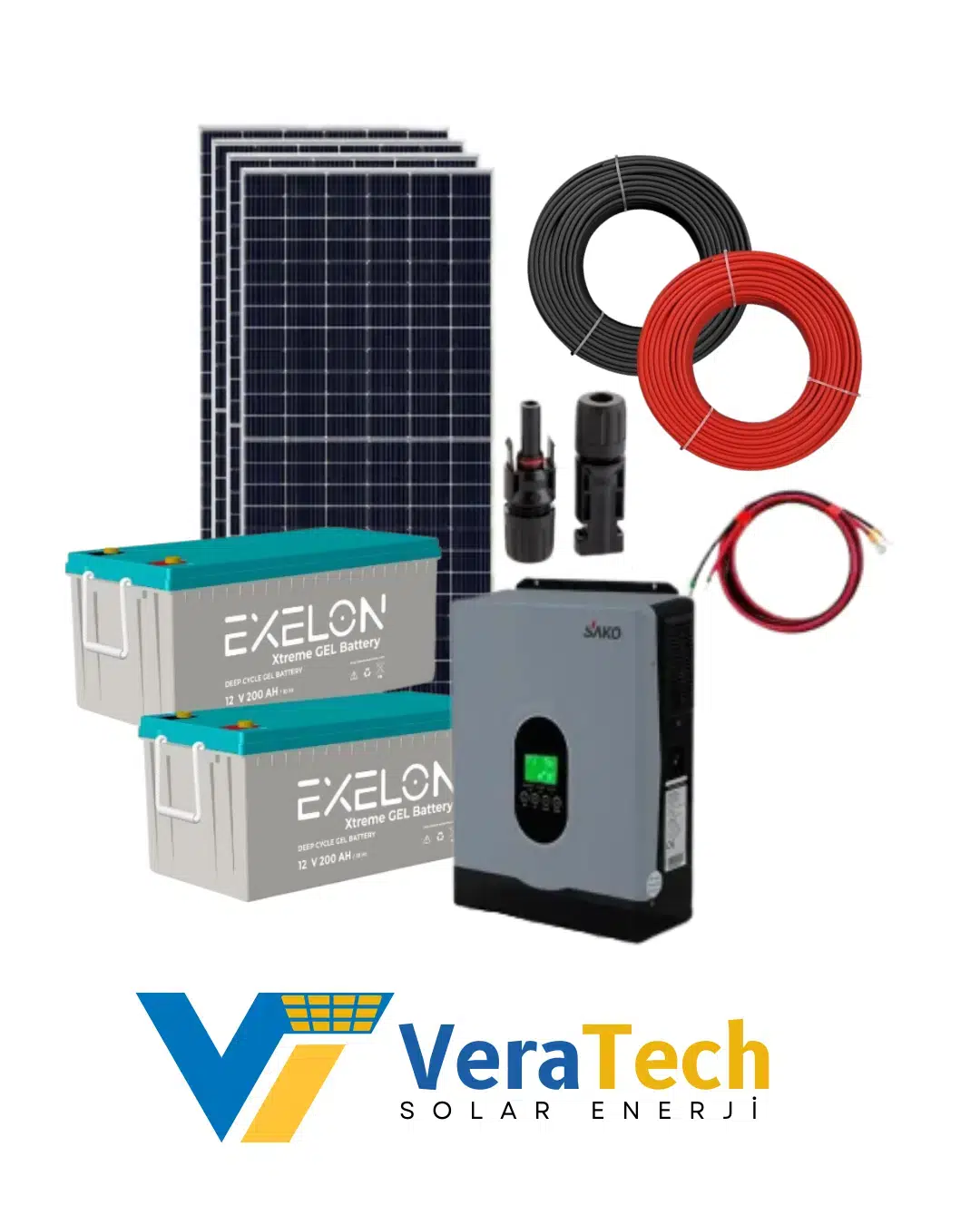 VeraTech Bahçe Evi Çamaşır Makinesi Solar Paketi 2200W Güneş Paneli 2.7Kw İnverter 400ah JelAkü