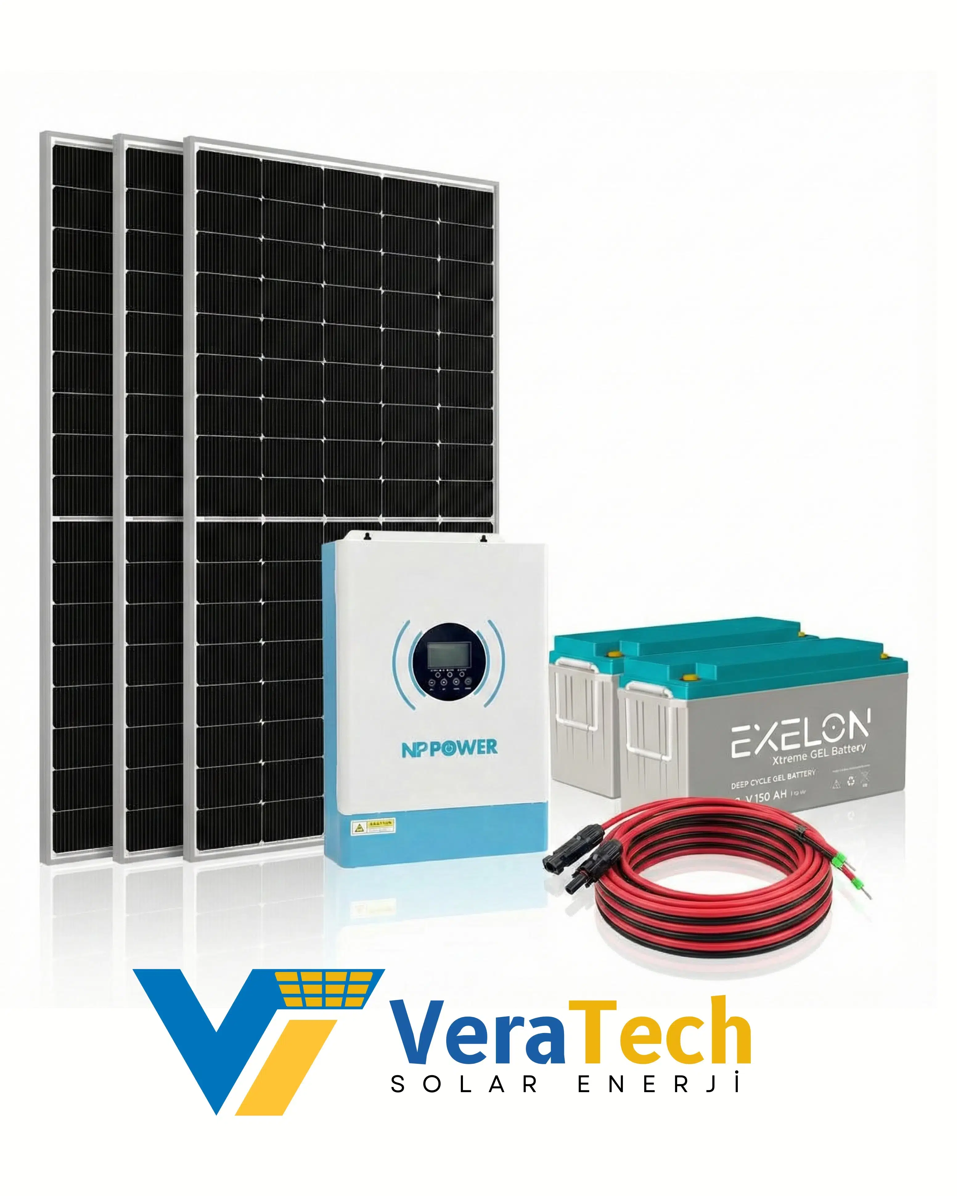 Güneş Enerjisi Bağ Evi Solar Paketi 3KVA İnverter 350W Güneş Paneli 150AH Jel Akü