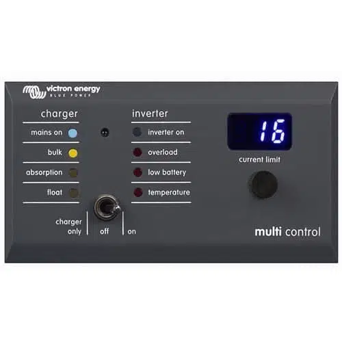 Victron Multiplus/Quattro Kontrol Paneli, REC020005010; MultiPlus ve Quattro inverter/şarj cihazlarıyla uyumlu olarak çalışır. Bu panel, akım limitlerini hassas şekilde izlemek ve ayarlamak isteyen sistem kullanıcıları için ideal bir kontrol arayüzüdür.